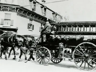 A steam powered fire engine was purchased in 1880. Since the new steam engine was prone to breaking down, the old hand pump continued to be used and three companies were created within the Fire Brigade: the Triumph Fire Company, the Steamer Fire Company and the Hook and Ladder Company. In 1890, a fire broke out downtown and the building was completely destroyed after both engines failed to work and the Hook and Ladder Company failed to arrive. It was later determined that the Hook and Ladder Company had dissolved without telling anyone. This unfortunate circumstance led to the firing of long time Fire Chief William Moyes. However, Moyes would return in 1906 and the turbulent times of the Fire Brigade seem to have ended. Moyes would hold the Fire Chief position for 30 years before leaving in 1936.